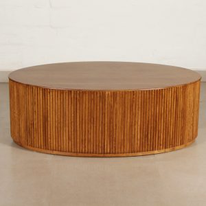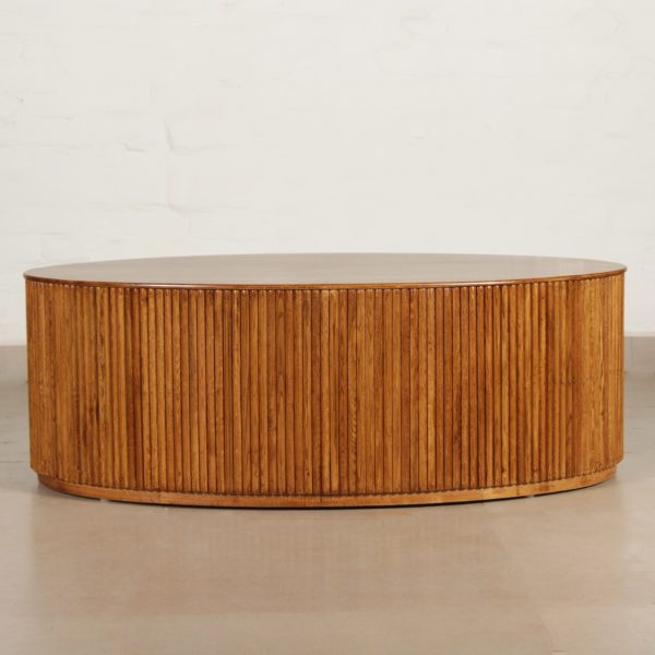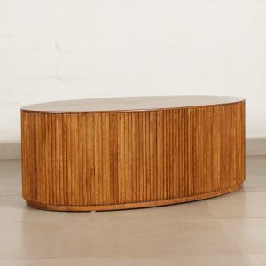 Masculine, handsome and centre of attraction is all what this coffee table is. This oval coffee table brings your attention straight to fluted paneling, each stick of wood is hand attached to bring this table to life. Accentuate with decorative tray, books and candles.