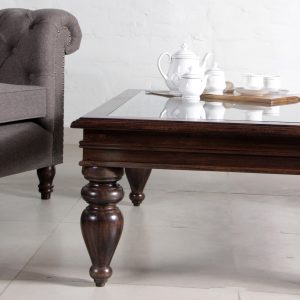 A harmonious convergence of historical allure and contemporary elegance. This table draws inspiration from vintage furniture, seamlessly blending it with modern design elements to create a piece that transcends time. Exhibiting vintage charm through its meticulously crafted legs and borders, the Myra Coffee Table harmoniously integrates a glass top that exudes modern sophistication. Serving as a flawless centerpiece in your hotel room, it effortlessly marries vintage aesthetics with the sleekness of the present. The dark wood tint not only enhances its timeless appeal but also simplifies maintenance, ensuring it remains a captivating addition to your decor for years to come. With its versatile character, the Myra Coffee Table becomes an artistic canvas, complementing any sofa or couch style with an air of effortless elegance.